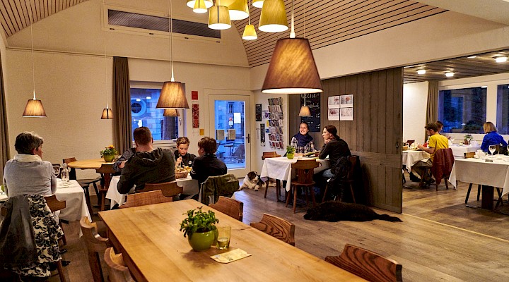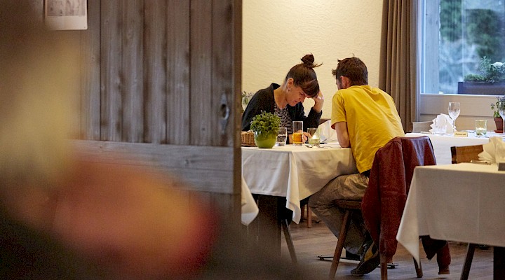Auch wenn die Bauernstube an einem ganz gewöhnlichen Tag meist dunkel bleibt, ist sie doch ein wichtiger Teil des Restaurants. Dass sie Teil des alten Wohnhauses ist, merkt man ganz schnell. Wenn an einem besonderen Festtag ganz viele Gäste zu uns kommen, servieren wir auch hier à la carte, und noch lieber bewirten wir hier Geburtstagskinder oder Arbeitskollegen. Man sagt sich auch, dass hier drin die Ideen bei einem Workshop besonders gut sprudeln sollen...